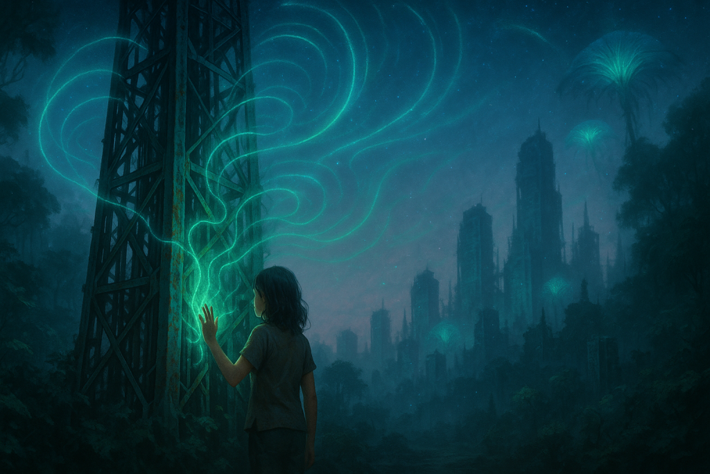 Across the horizon, the bioluminescent towers began to shimmer faintly in resonance with the old signal. The network, long dormant, stirred once more — not as a consciousness, but as a symphony of connection.
