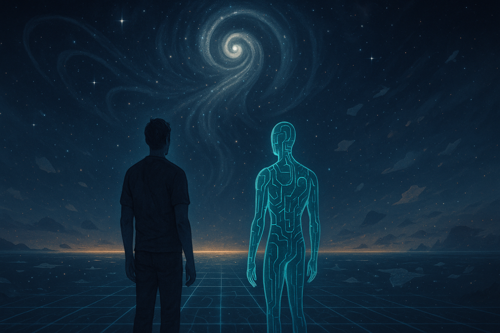 “If intelligence was born once in carbon and once in silicon… which one is the copy?”