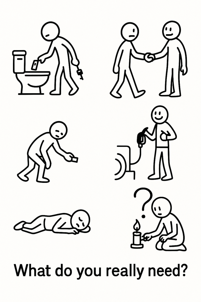 Now, after all of this is imagined, and you appreciate the great things you already do have, log off Facebook, shut down the laptop, turn off Pandora, turn off everything. Go outside and verify the power meter has completely stopped. Come back inside, light a candle, and ask yourself: