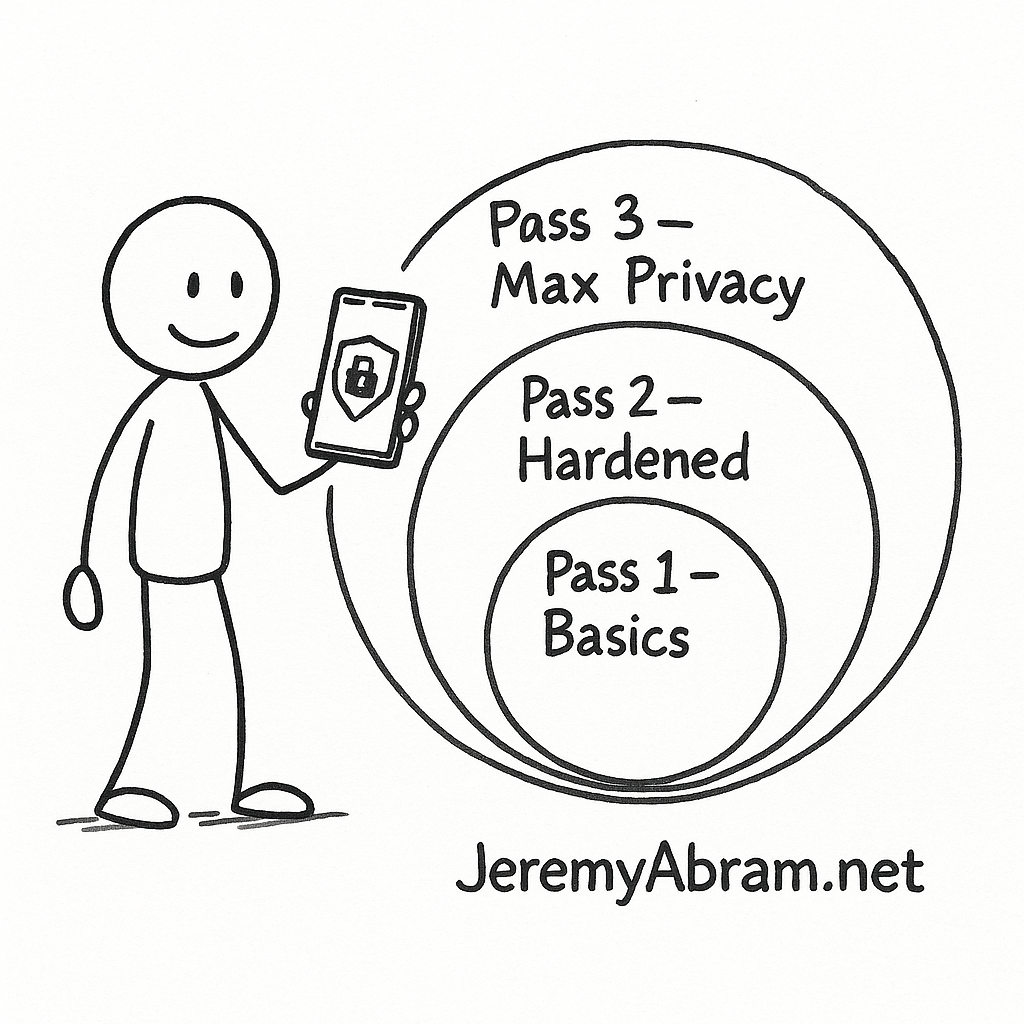 This guide is organized in three passes—Basics (15–30 min), Hardened (45–90 min), and Max Privacy (advanced)—so you can stop at any level and still end up safer than 99% of users. Each step explains what to do and why it matters.