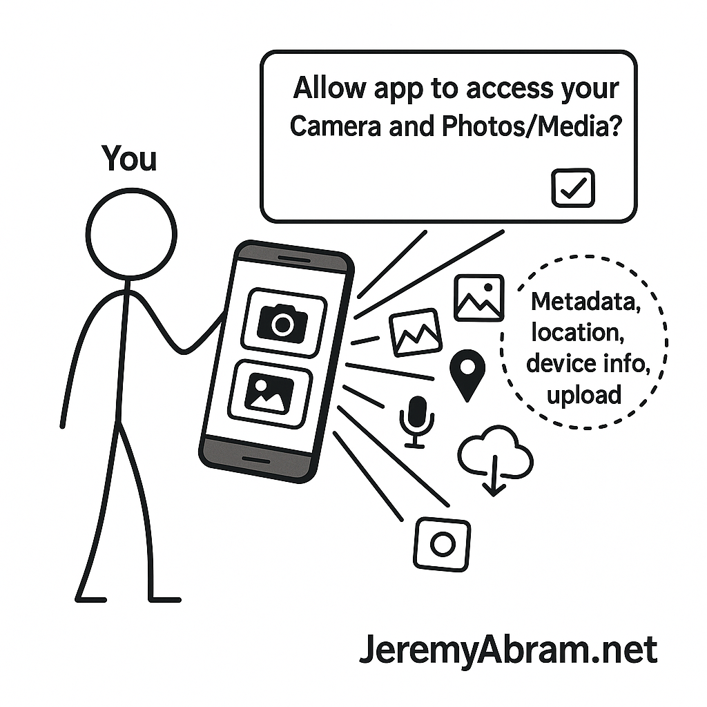 “Access to camera and photos/media” can be narrowly scoped and safe—or broad and risky—depending on how you grant it and how the app uses it. Today’s iOS and Android give you fine-grained control (Selected Photos, privacy-preserving pickers, and clearer store disclosures). Use those controls, and always validate the app’s stated practices against what you actually need it to do. Google Help+3Apple Developer+3Apple Developer+3